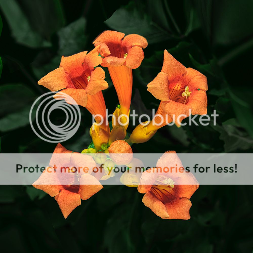 Nice image of the flowers, but the image as a whole looks artificial, as if the flowers are detached and floating above the leaves. It looks like an image of the flowers was selected and then dropped onto the background. Is that what you did? I'm trying to figure out why that makes it look artificial. I have a hunch it might not be obvious if the background were something like plain black. I am guessing that what causes this, apart from the very sharp edge, is that there is no continuity with the background--nothing connecting the flowers to the leaves, dramatically different lighting, etc.