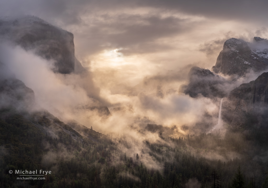 Ahead of my trip to Yosemite in 2016, I'm following the blog of Michael Frye, a professional living in and working mainly in Yosemite. He posted this picture which he took on November 15th, as the first snow arrived in the valley. It's from Tunnel View, one of the iconic locations in the park.