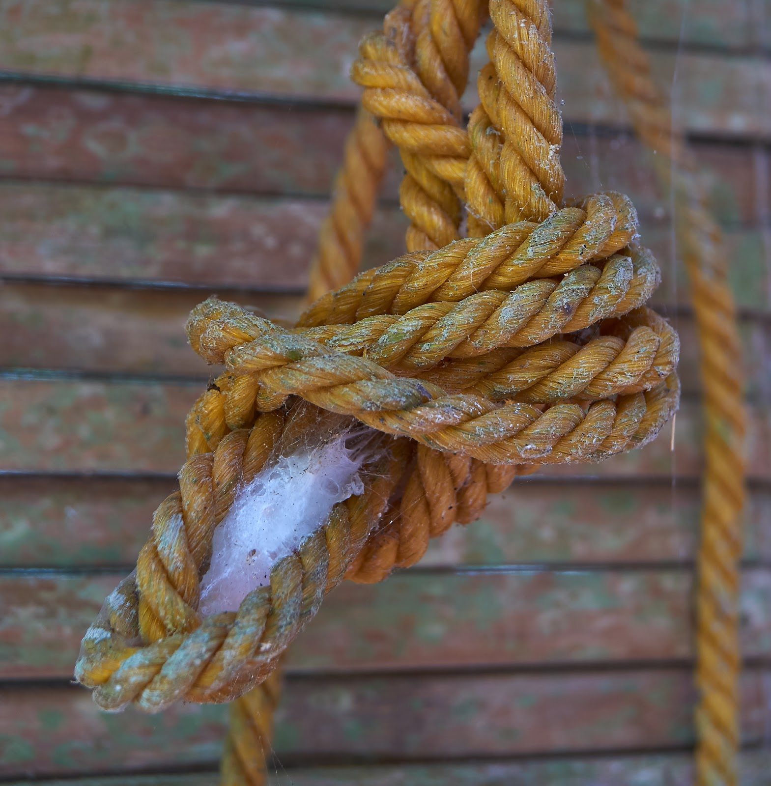 I like less the bit of dried grass hanging off the right hand side of the knot and the straight line above and below it, but I think it is all part of the web, so shouldn't be disturbed