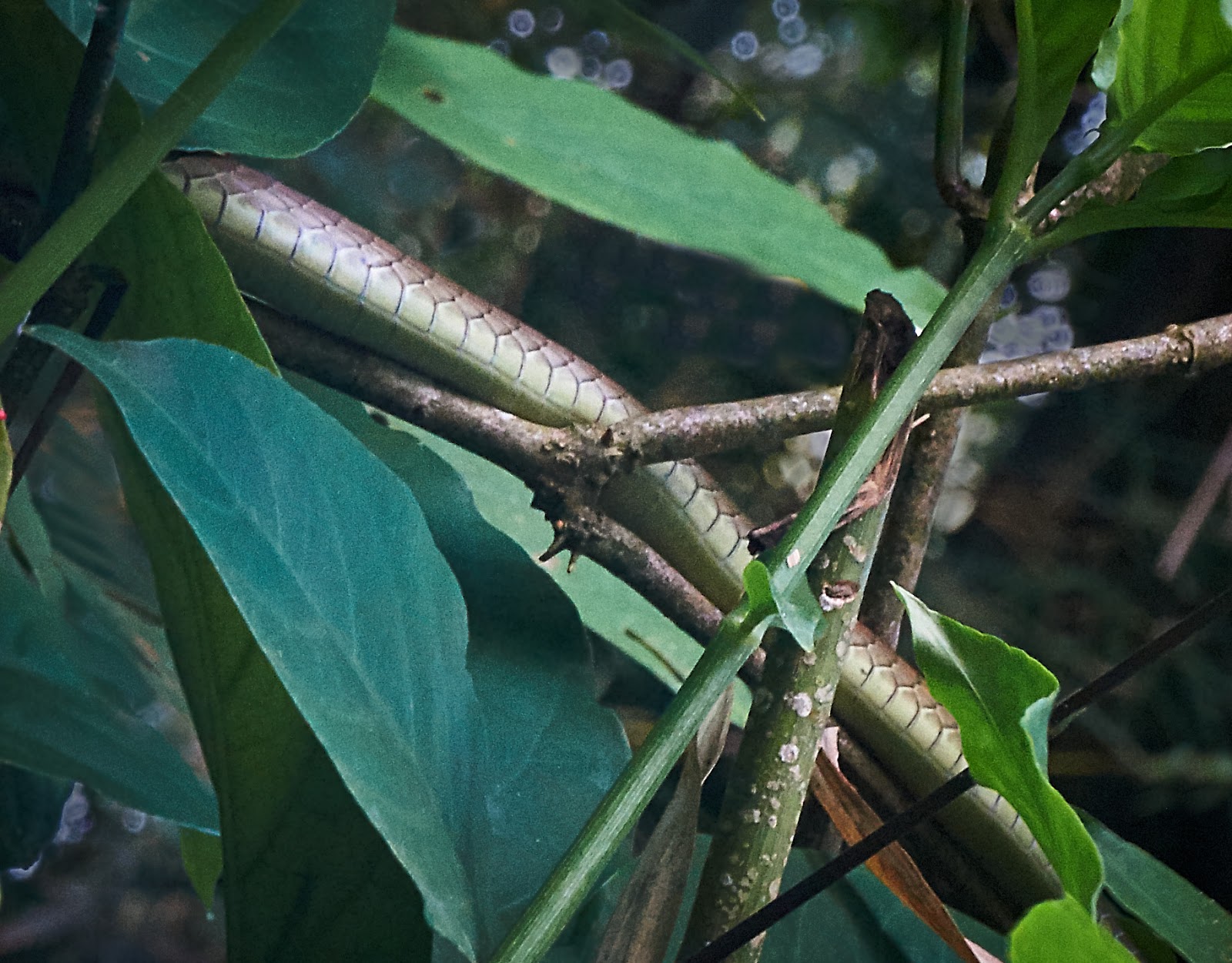 Lest you think me either brave or foolish this is a coconut tree snake and unless they are in a bad mood they are harmless. Even if they bite they are not poisonous.