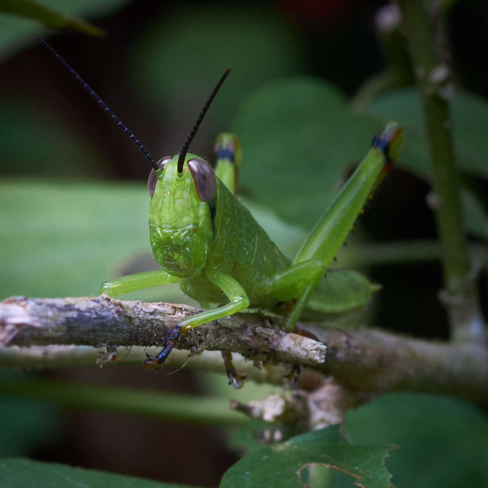 That is one lucky grasshopper and can see the smug face he has. I love the expression and the angle you took of him (her?)